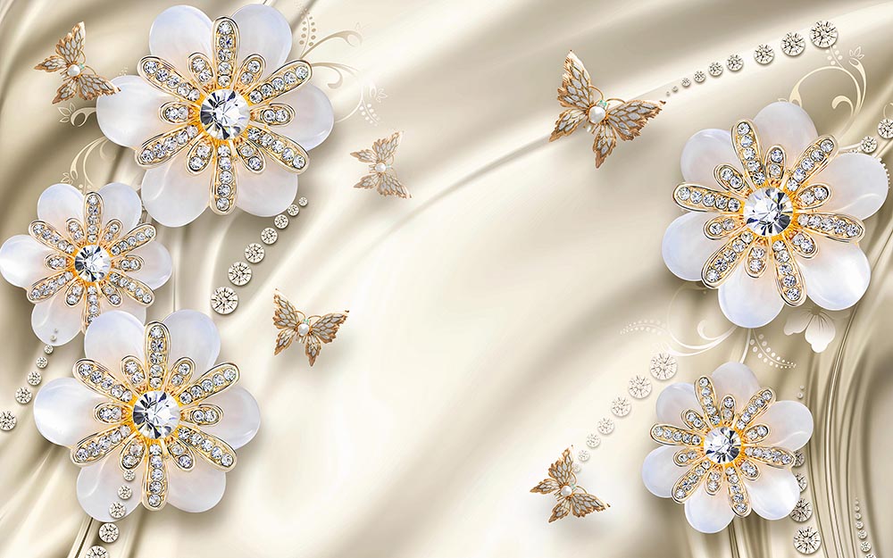 • 3 Boyutlu incili Çiçekler ve Kelebekler Duvar Kağıdı 3 boyutlu şekilde satın alın!
