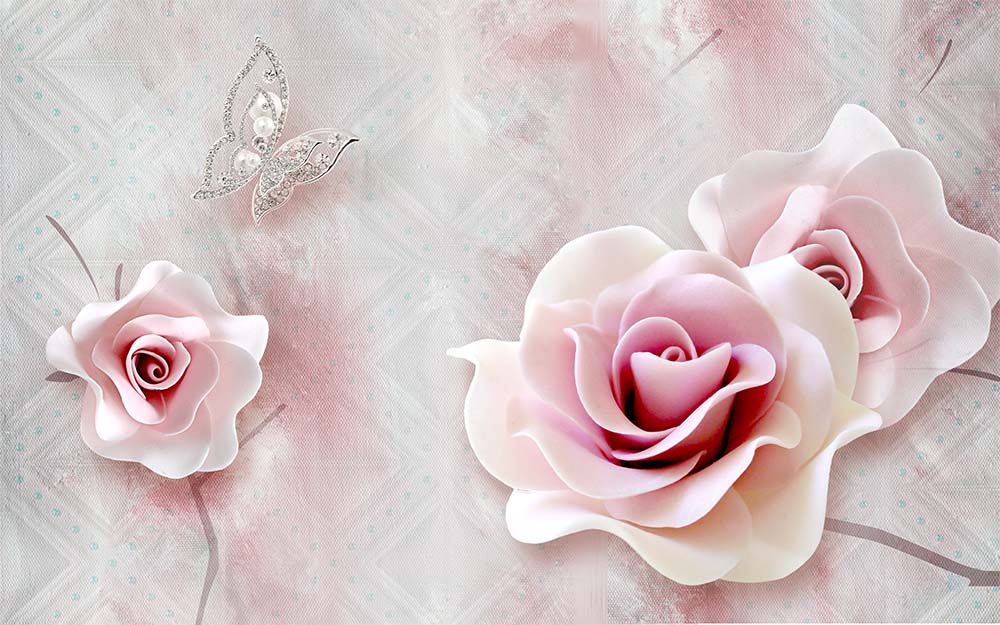 • 3 Boyutlu Pembe Güller Duvar Kağıdı 3 boyutlu şekilde satın alın!