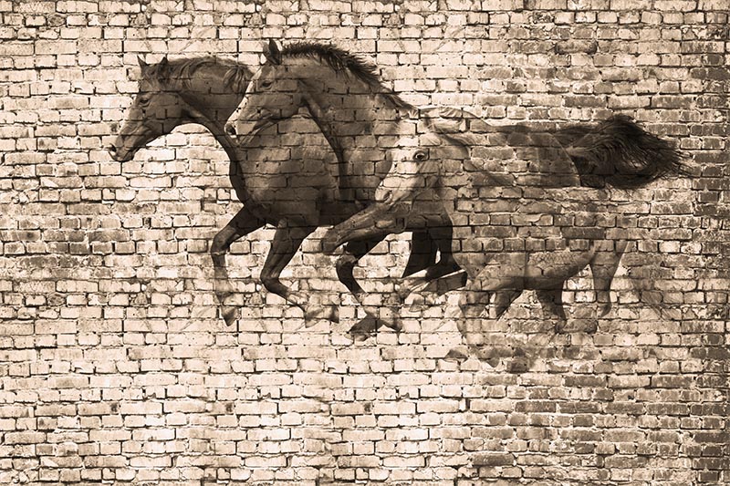 • 3 Boyutlu Taş Desen Koşan Atlar Duvar Kağıdı 3 boyutlu şekilde satın alın!