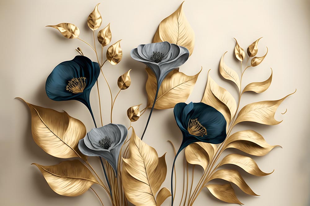 • 3 Boyutlu Yapraklar ve Çiçekler Duvar Kağıdı - 3D Duvar Kağıdı 3 boyutlu şekilde satın alın!