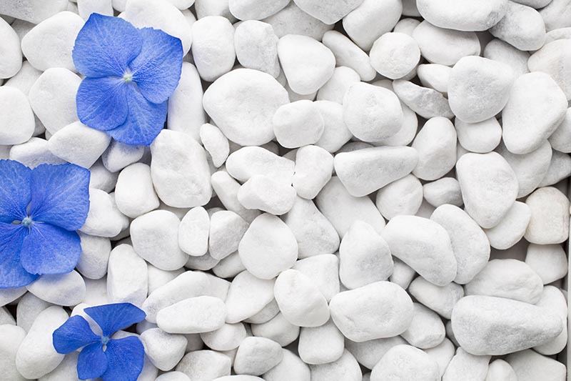 3 Boyutlu Yuvarlak Taşlar ve Mavi Çiçekler