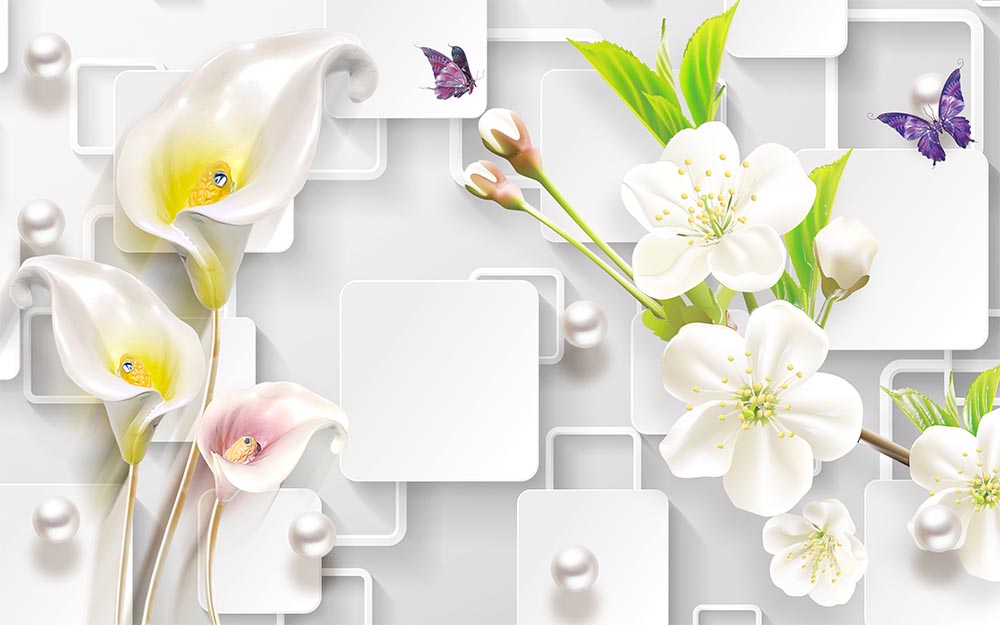 • 3 Boyutlu Zemin Üzerinde Çiçekler Duvar Kağıdı 3 boyutlu şekilde satın alın!
