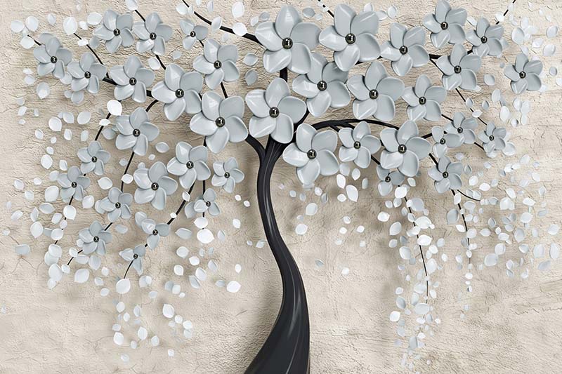 • 3D Boyutlu Ağaç ve Çiçekler Duvar Kağıdı 3 boyutlu şekilde satın alın!
