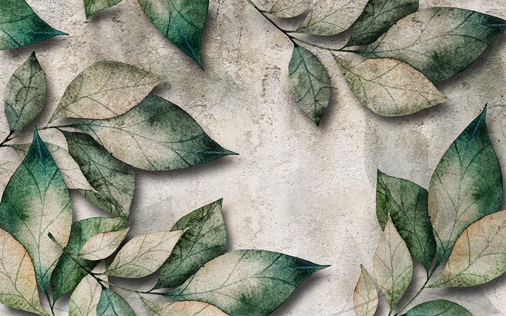 • 3D Boyutlu Büyük Yeşil Yapraklar Duvar Kağıdı 3 boyutlu şekilde satın alın!
