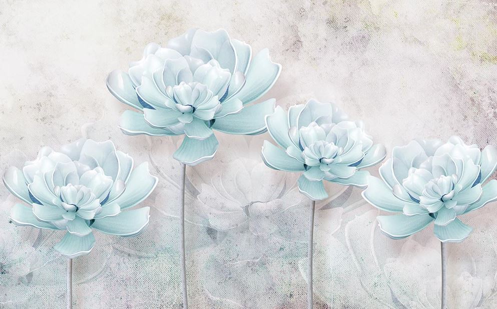• 3D Boyutlu Turkuaz Çiçekler Duvar Kağıdı 3 boyutlu şekilde satın alın!