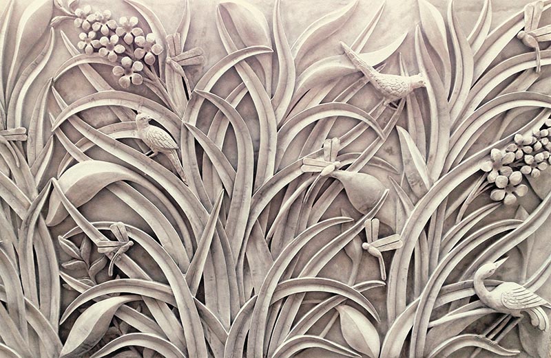 3D Kabartma Yapraklar ve Kuşlar Duvar Kağıdı