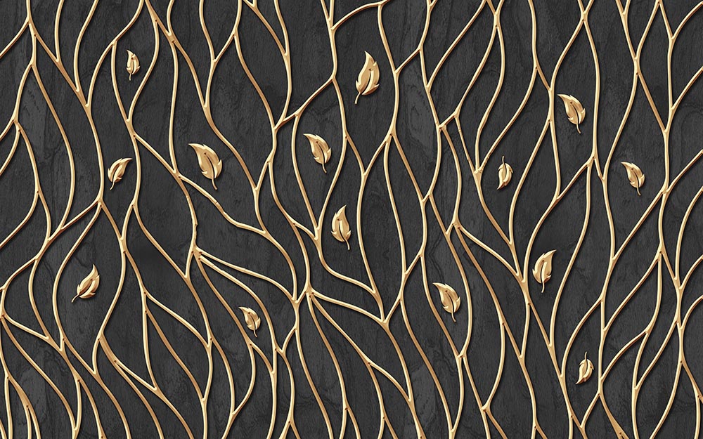 • 3D Koyu Renk Zemin Gold Yapraklar Duvar Kağıdı 3 boyutlu şekilde satın alın!