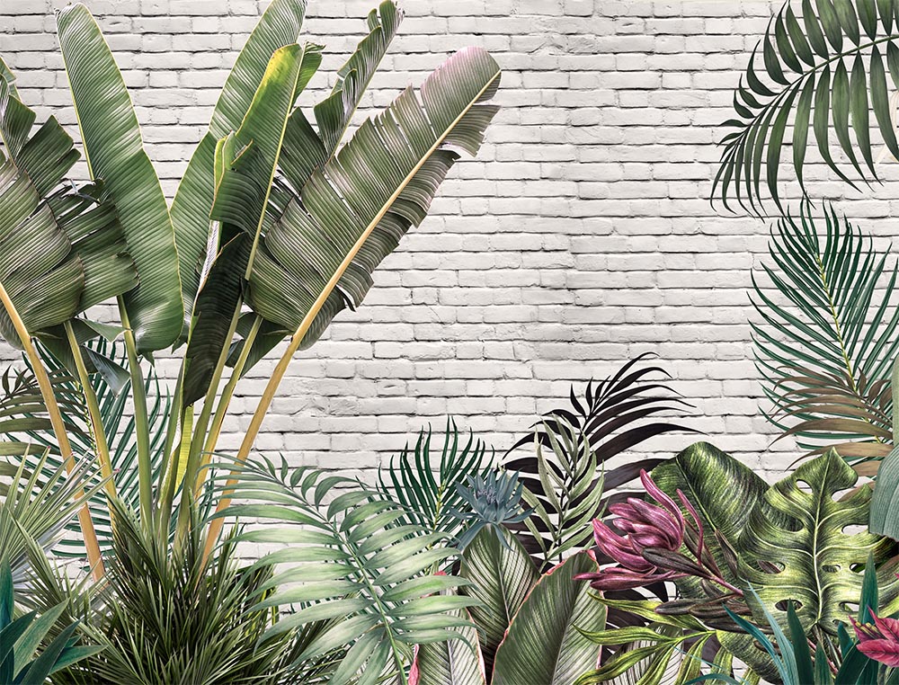 3D Taş Zemin Tropikal Ağaçlar Duvar Kağıdı
