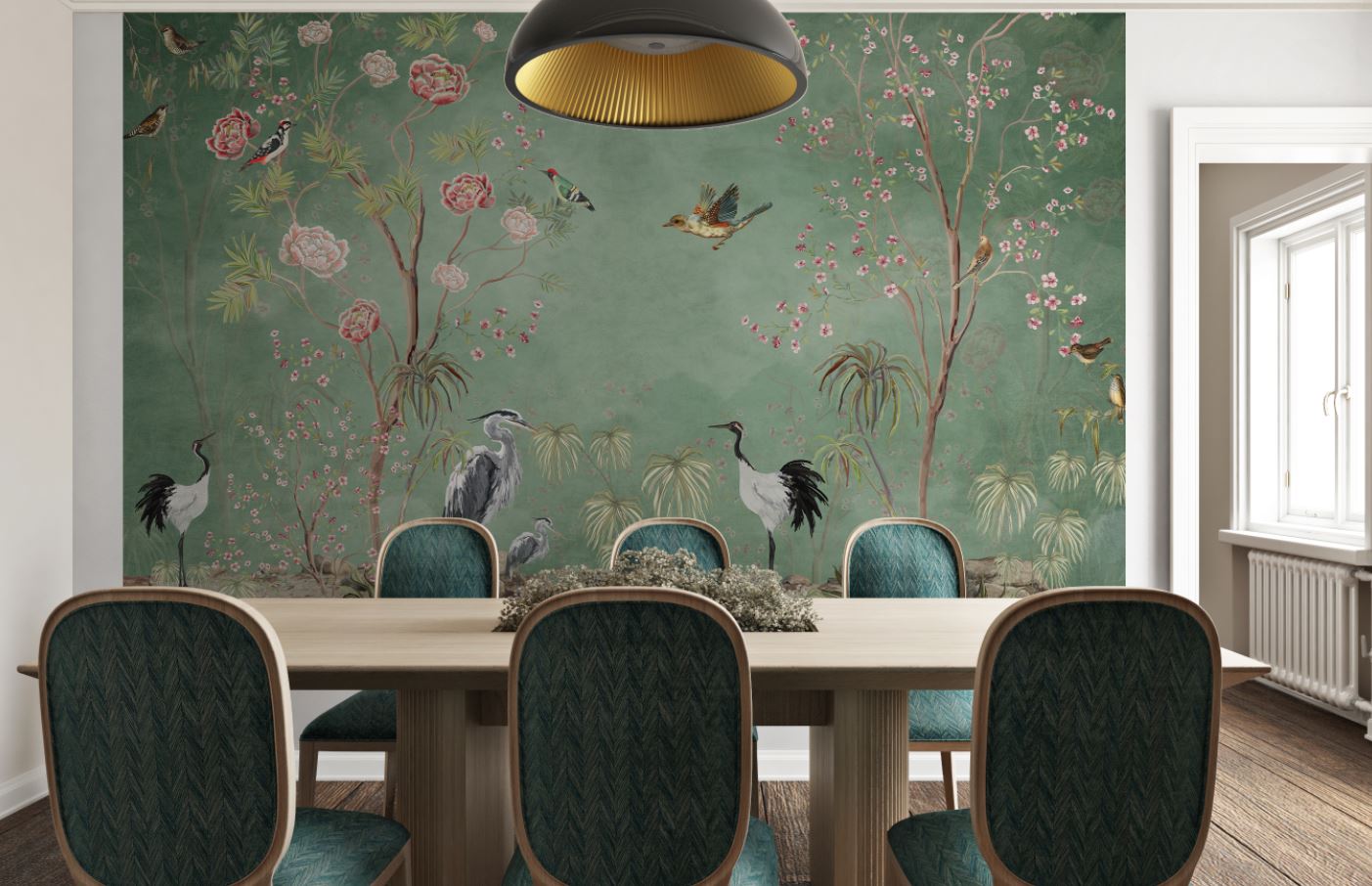 Ağaç Dalları Çiçekler ve Hayvanlar Sanatsal Duvar Kağıdı