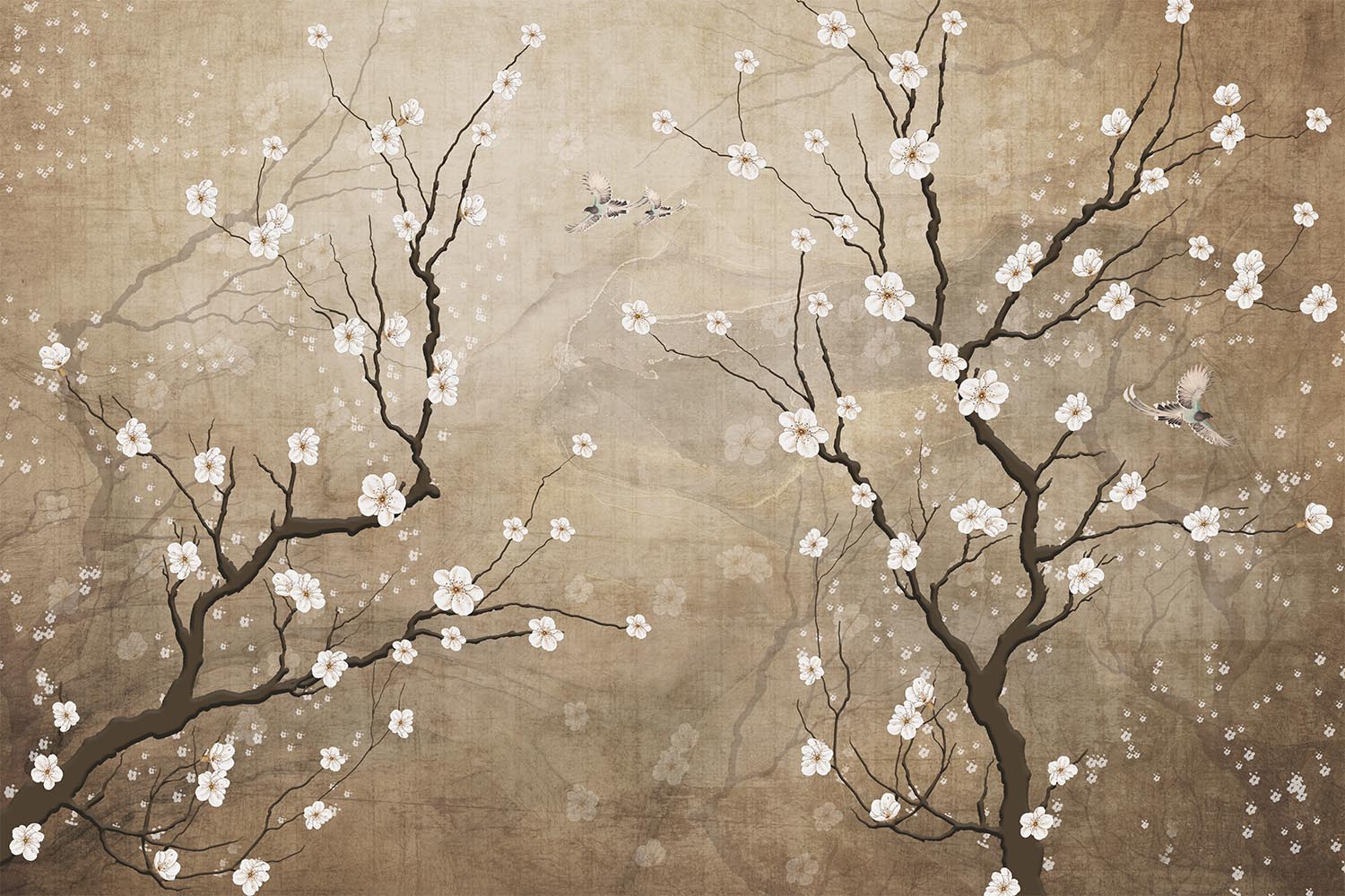 • Ağaç Dalları üzerinde Beyaz çiçekler Vintage Duvar Kağıdı 3 boyutlu şekilde satın alın!