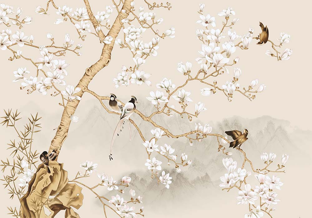 • Ağaç Dalları üzerinde Kuşlar Vintage Duvar Kağıdı 3 boyutlu şekilde satın alın!