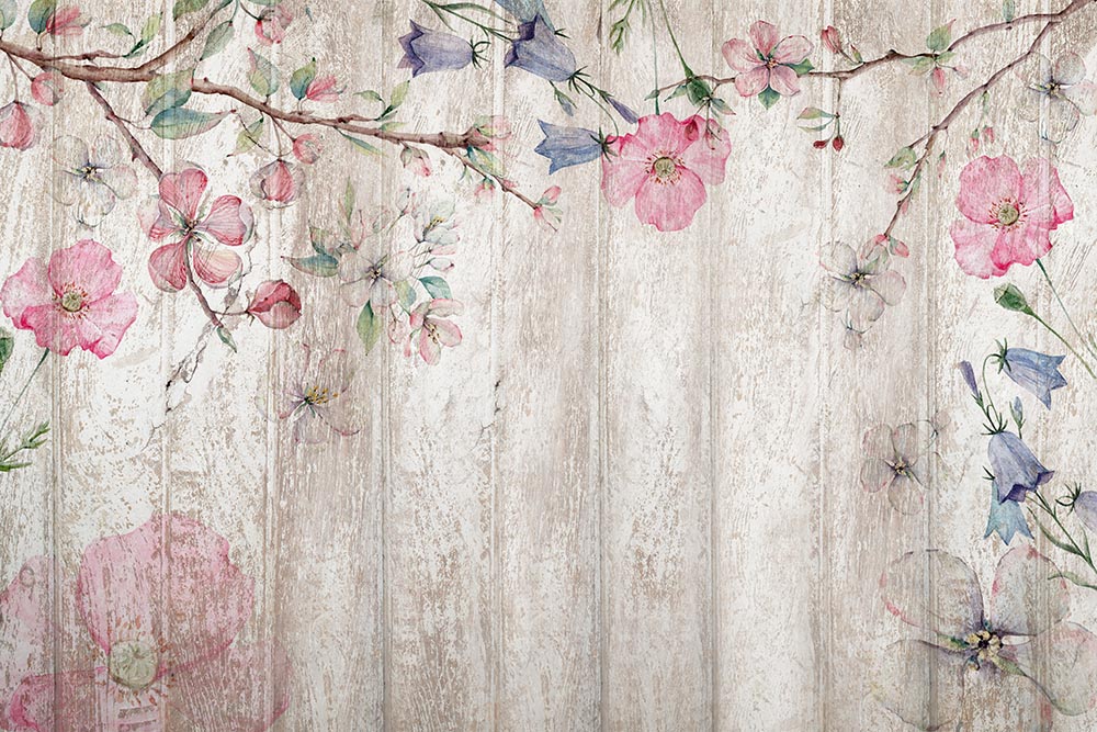 • Ağaç Dalları ve Soft Renk Çiçekler Vintage Duvar Kağıdı 3 boyutlu şekilde satın alın!