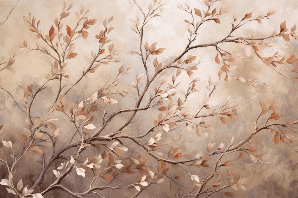 • Ağaç dalları ve Yapraklar , vintage duvar kağıdı 3 boyutlu şekilde satın alın!