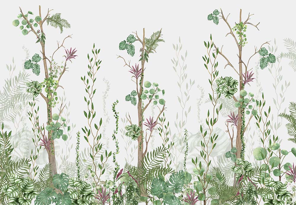 Ağaçlar Sarmaşıklar ve Yapraklar Özel Tasarım Duvar Kağıdı