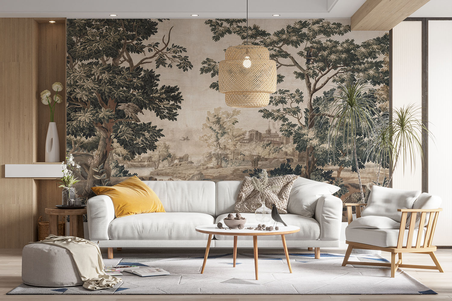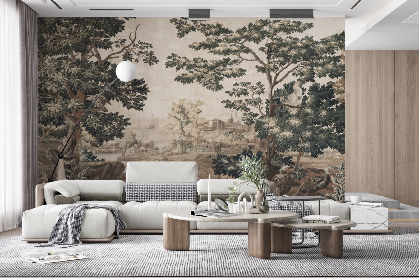 Ağaçlar ve Hayvanlar Antik Tarz Duvar Kağıdı