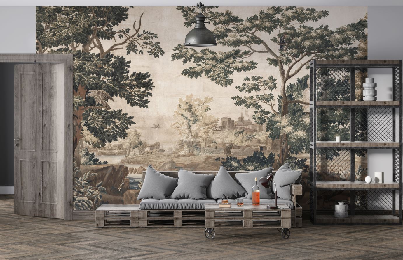 • Ağaçlar ve Hayvanlar Antik Tarz Duvar Kağıdı 3 boyutlu şekilde satın alın!