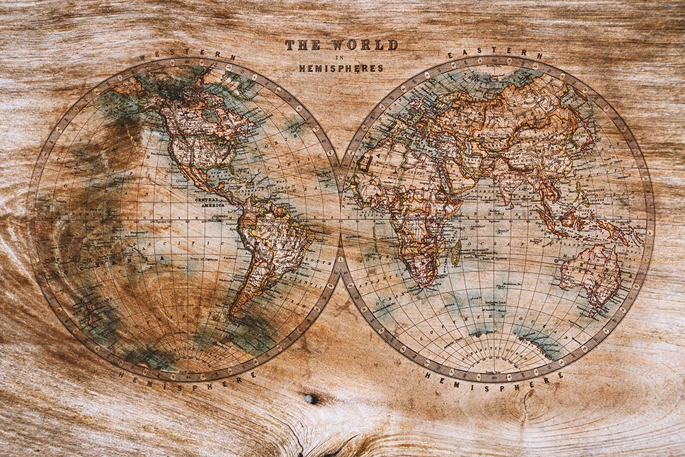 • Ahşap Zemin Üzerinde Dünya Haritası Duvar Kağıtları 3 boyutlu şekilde satın alın!
