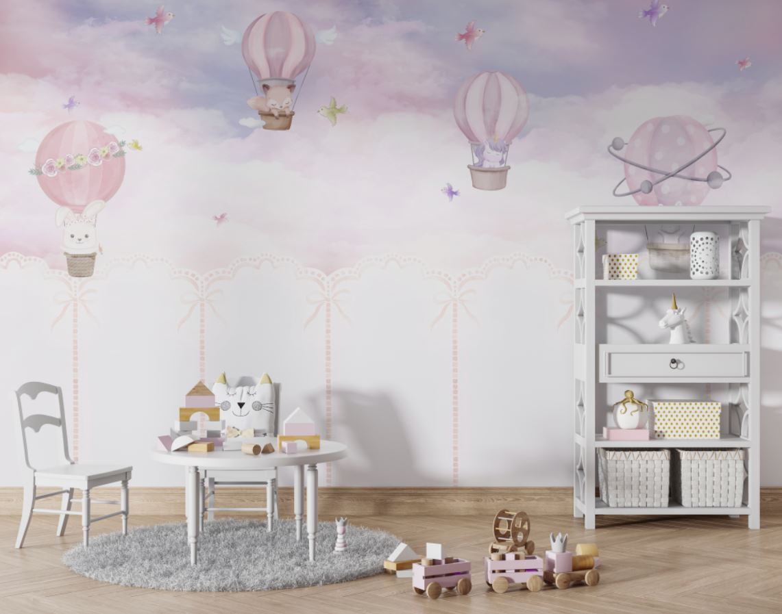 • Alt Kısmı Kurdale Desenli Üst Taraf Uçan Balonlar Çocuk odası duvar kağıdı 3 boyutlu şekilde satın alın!