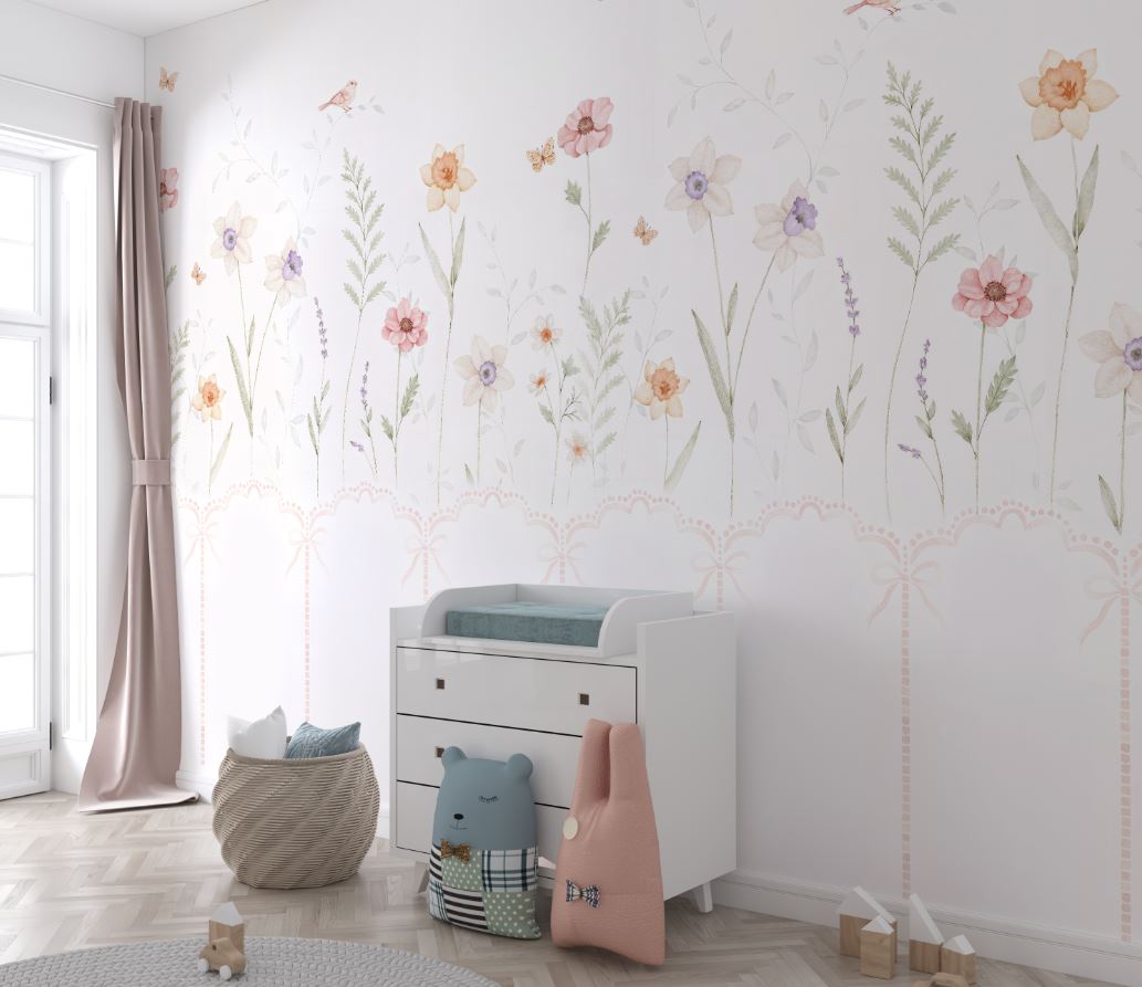 • Altı Kurdaleli üstü Soft renk Çiçekler Kız Çocuk ve Genç Odası Duvar Kağıdı 3 boyutlu şekilde satın alın!