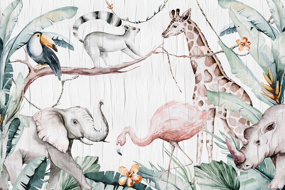 • Amazon Ormanları ve Safari Hayvanları Duvar Kağıdı 3 boyutlu şekilde satın alın!