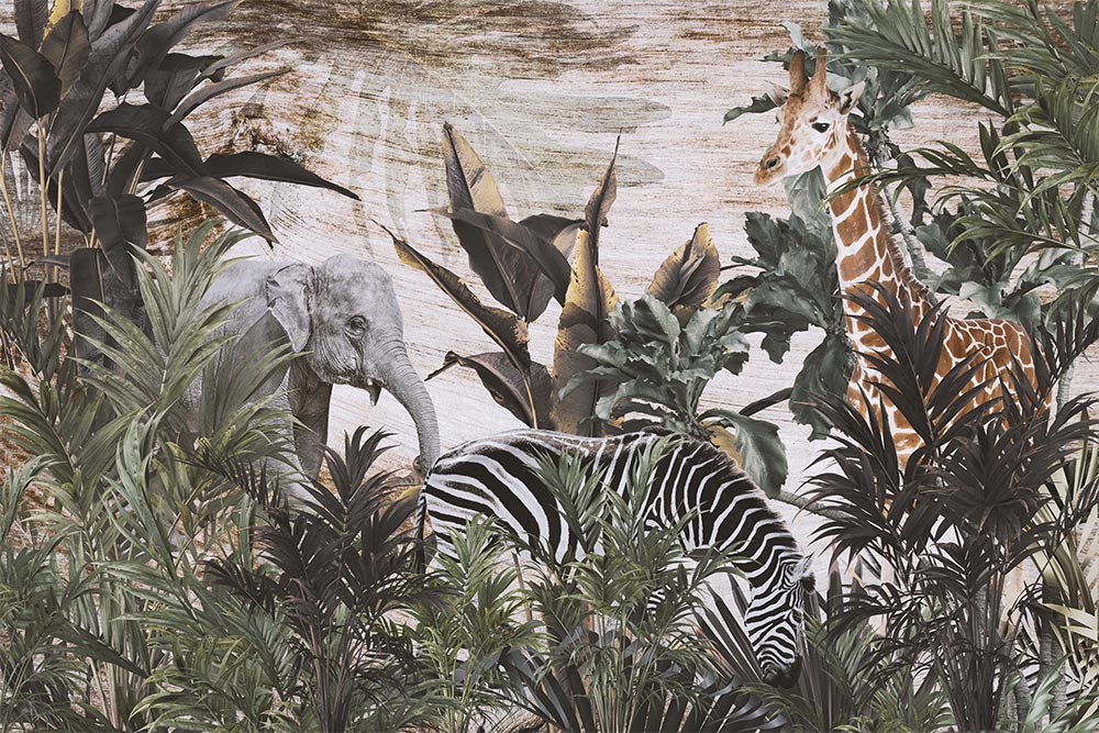 • Amazon Ormanlarında Safari Hayvanları Duvar Kağıdı 3 boyutlu şekilde satın alın!