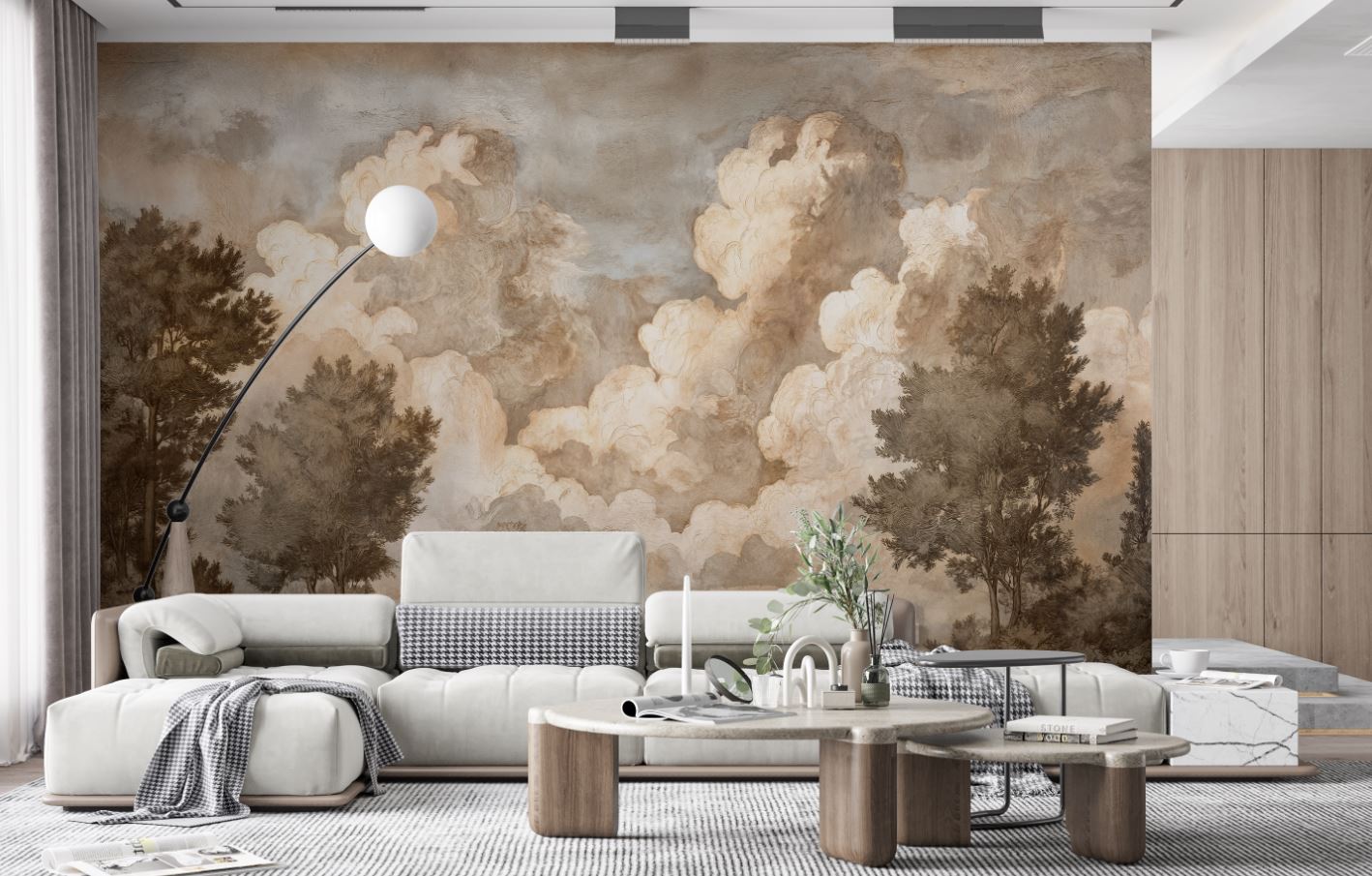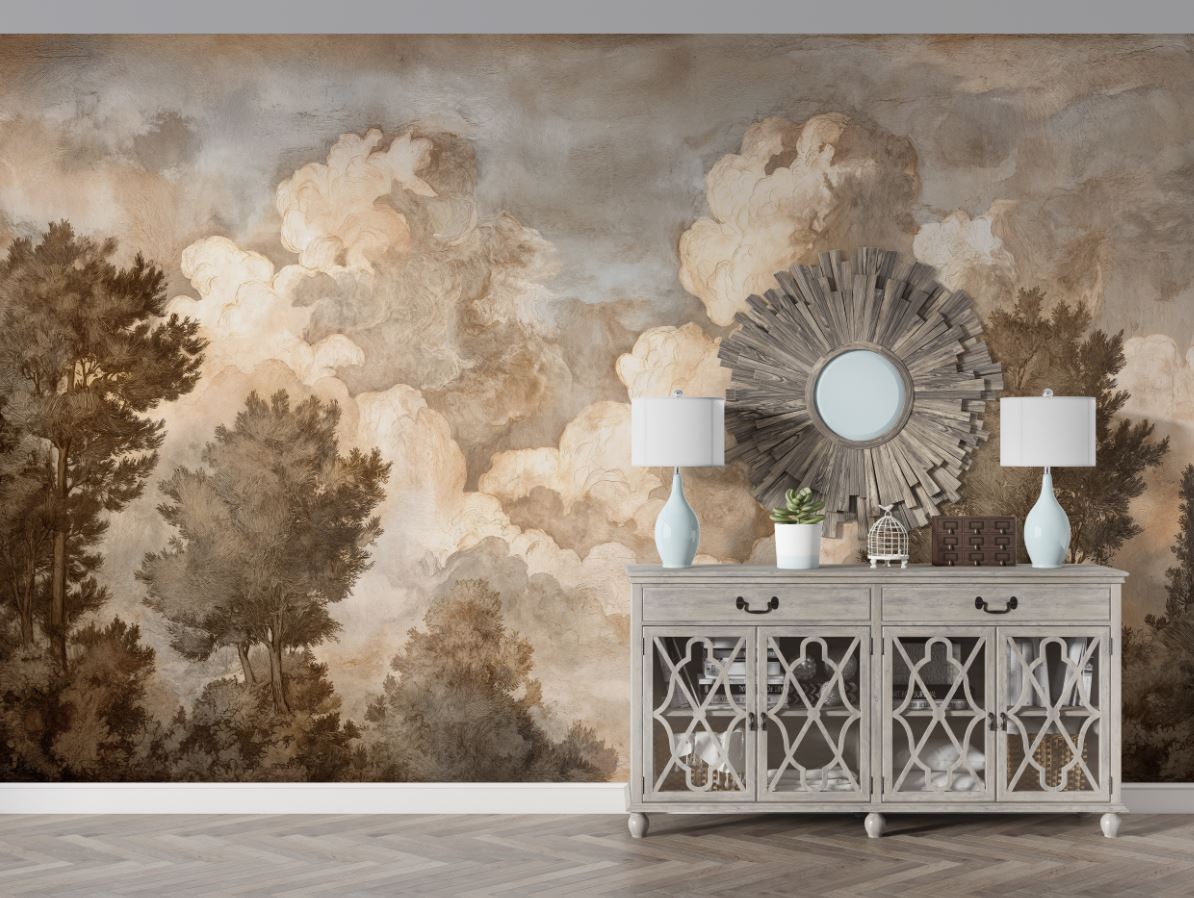 • Antik Ağaçlar ve Bulutlar Manzara Duvar Kağıdı 3 boyutlu şekilde satın alın!