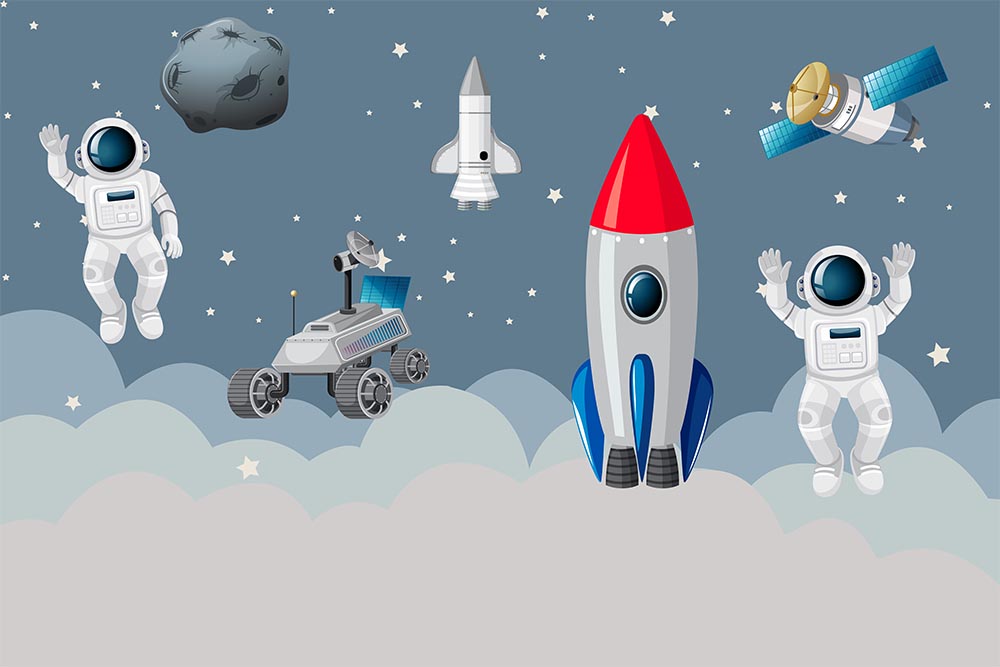 Astronotlar ve Uzay Araçları Çocuk Odası Duvar Kağıdı