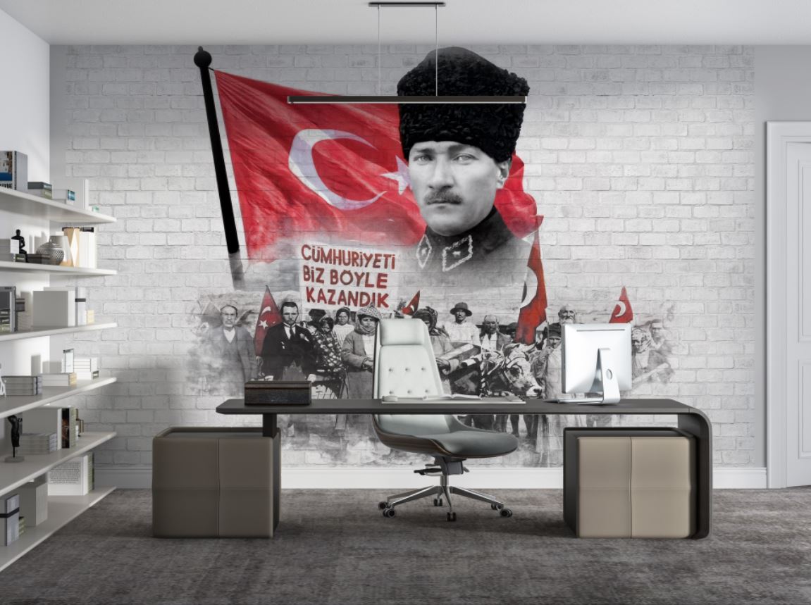 • Atatürk ve Cumhuriyet Temalı Özel Tasarım Duvar Kağıdı 3 boyutlu şekilde satın alın!