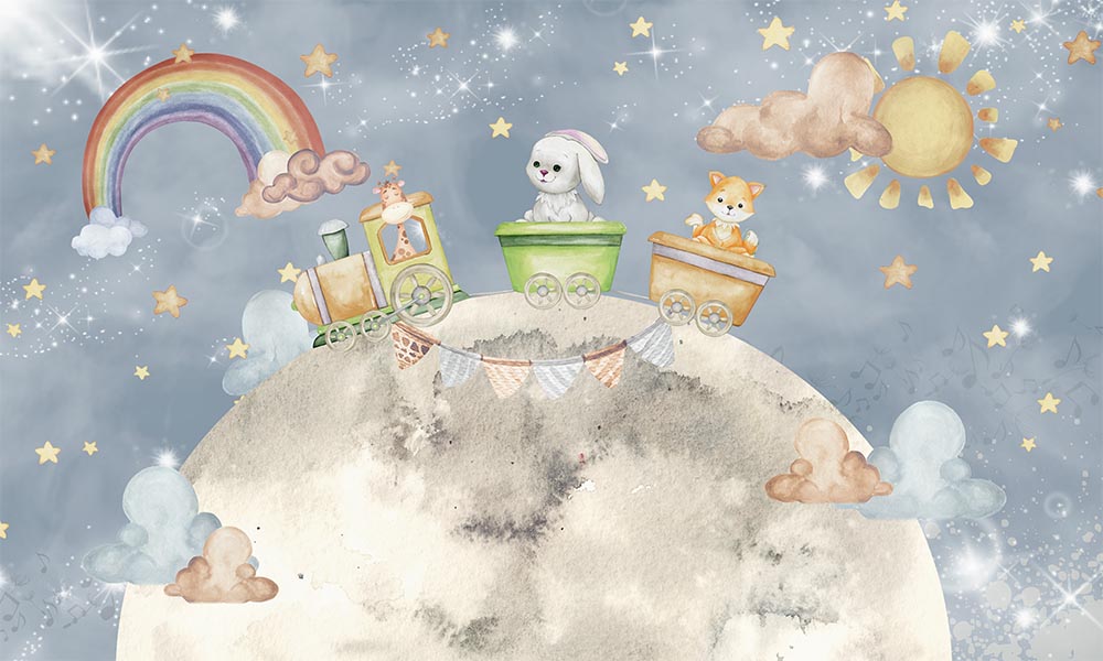 • Ay üzerinde Sevimli Hayvanlar Çocuk Odası Duvar Kağıdı 3 boyutlu şekilde satın alın!