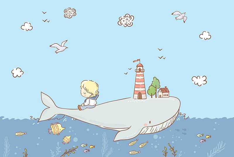 • Balina Üzerinde Oturan Çocuk Duvar Kağıdı 3 boyutlu şekilde satın alın!