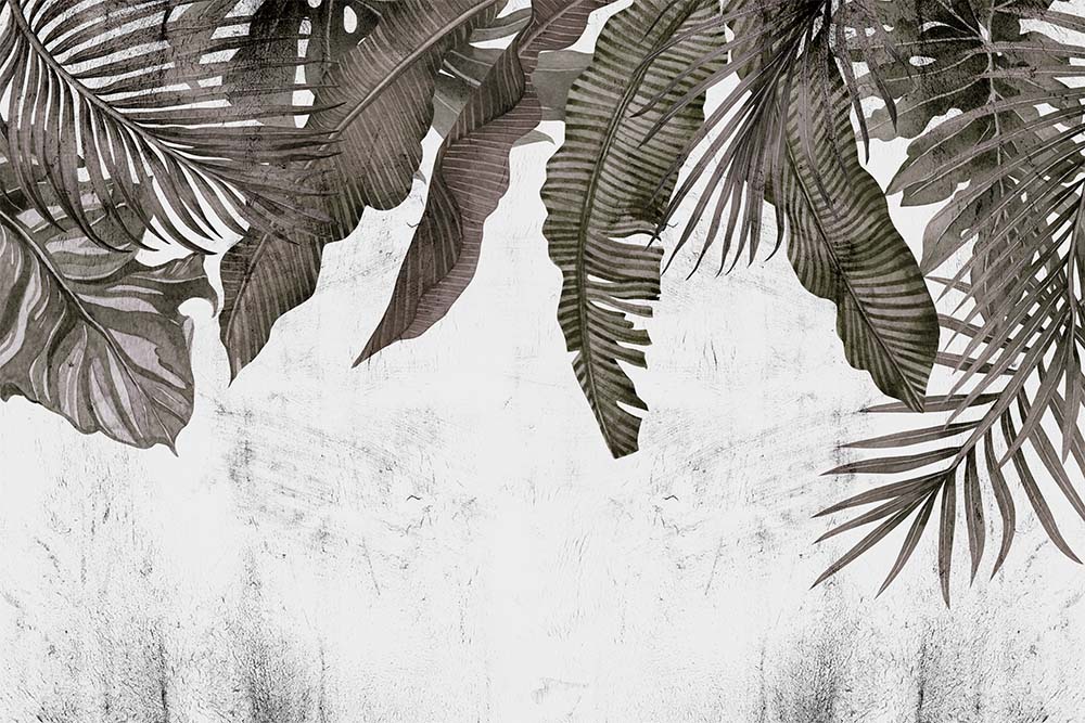 • Beton Duvar Üzerinde Kahve Tonlarında Tropikal Yapraklar 3 boyutlu şekilde satın alın!