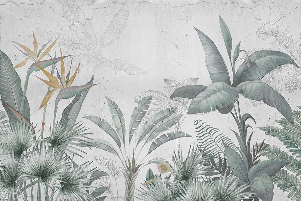 • Beton Duvar Üzerinde Tropikal Yapraklar Duvar Kağıdı 3 boyutlu şekilde satın alın!