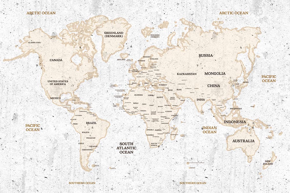 • Beton Zemin Krem Renk Dünya Haritası Duvar Kağıdı 3 boyutlu şekilde satın alın!