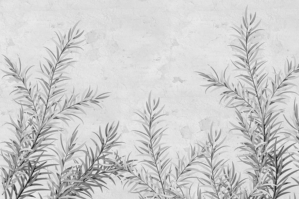 • Beton Zemin Siyah Beyaz Yapraklar Duvar Kağıdı 3 boyutlu şekilde satın alın!