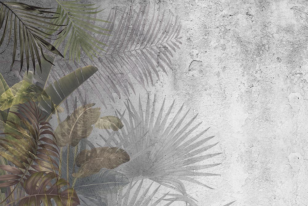 • Beton Zemin Tropikal Yapraklar Duvar Kağıdı 3 boyutlu şekilde satın alın!