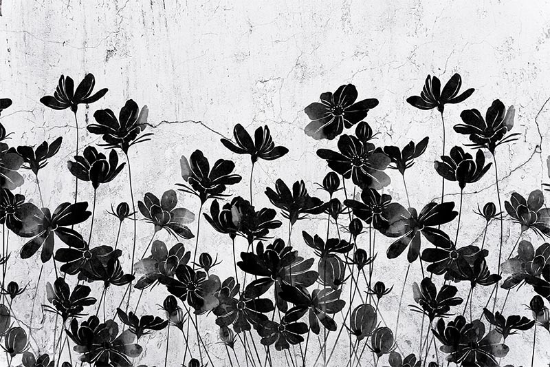 • Beton Zemin Üzerinde Siyah Çiçekler 3 boyutlu şekilde satın alın!