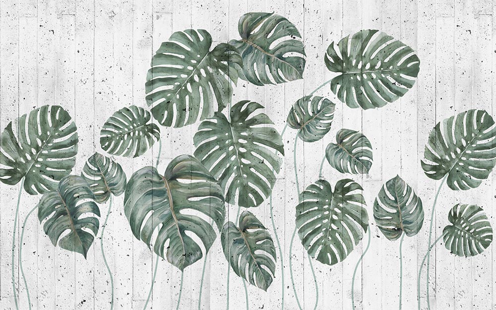• Beton Zemin Üzerinde Tropikal Büyük Yapraklar Duvar Kağıdı 3 boyutlu şekilde satın alın!