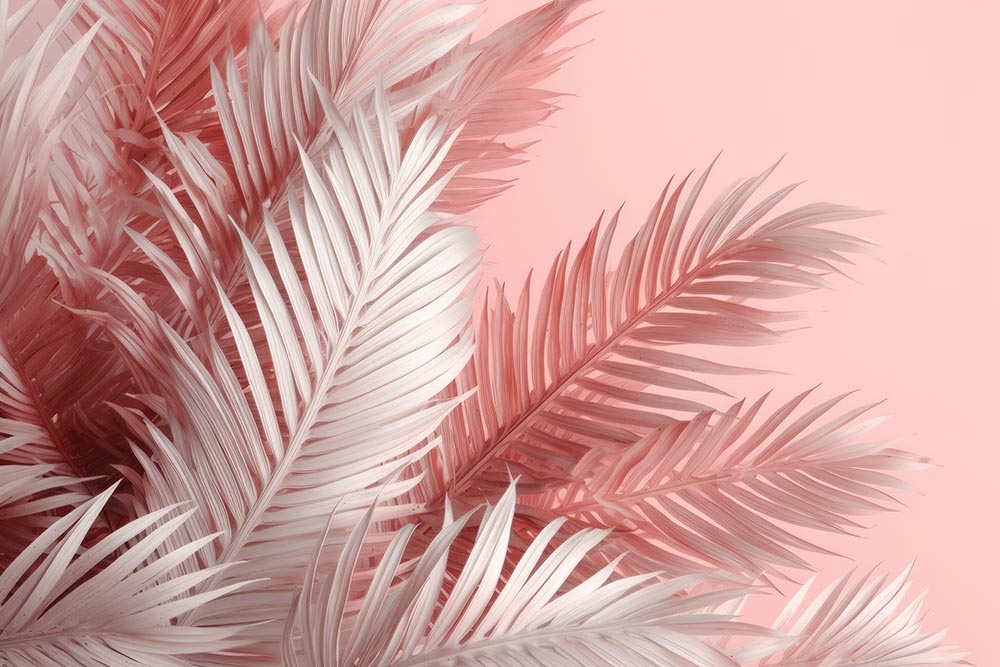 Beyaz Pembe Büyük Tropik Yapraklar 3D Duvar Kağıdı