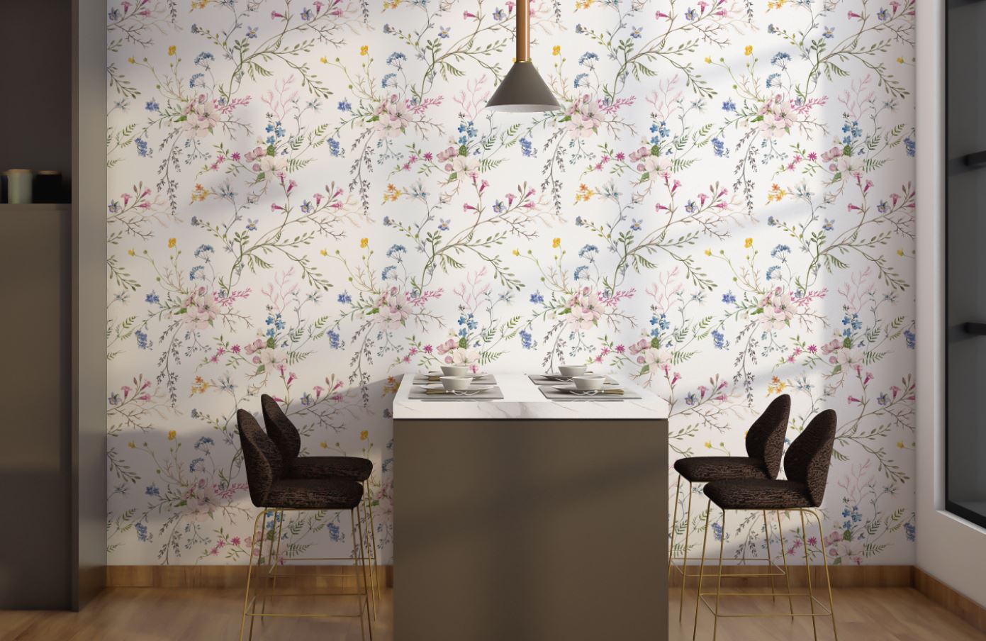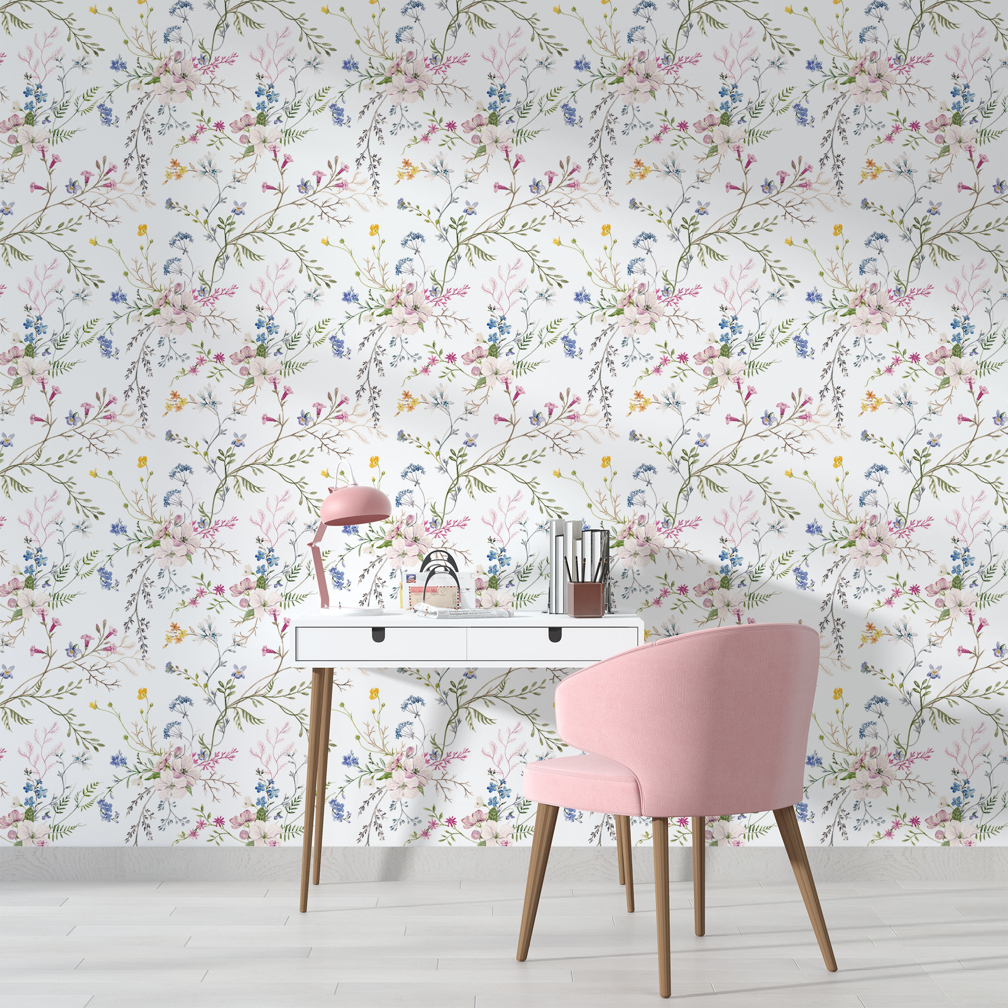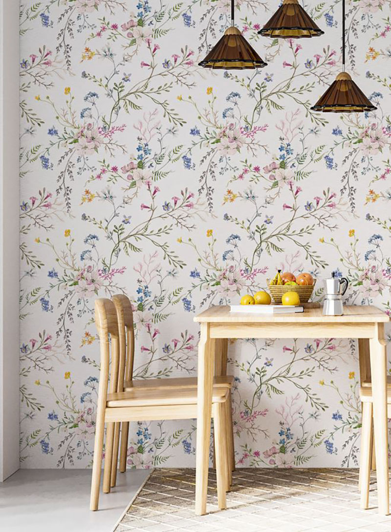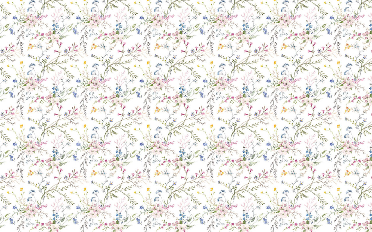 • Beyaz Zemin Küçük Renkli Çiçekler Duvar Kağıdı 3 boyutlu şekilde satın alın!