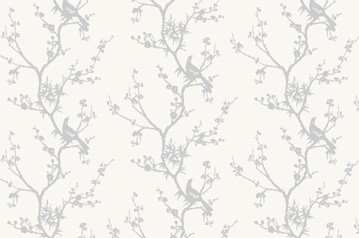 • Beyaz zemin üzerinde Gri ağaç dalları ve kuşlar Duvar Kağıdı 3 boyutlu şekilde satın alın!