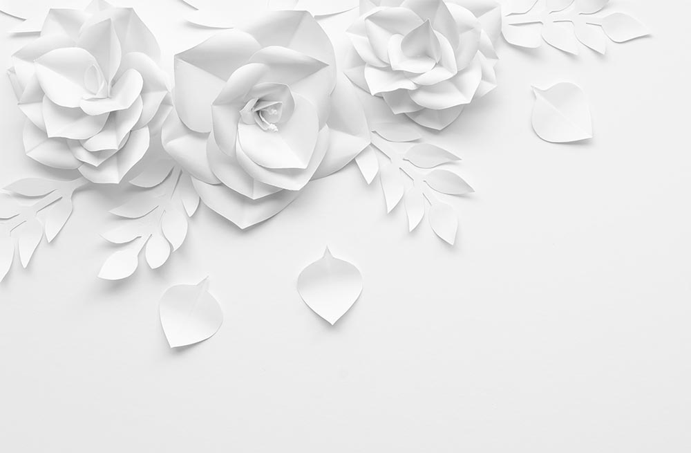 • Beyaz Zemin Üzerinde Kabartma 3D Çiçekler Duvar Kağıdı 3 boyutlu şekilde satın alın!