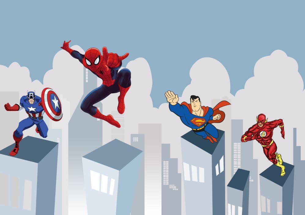 Binalar üzerinde Süper Kahramanlar Çocuk - Genç Odası Duvar Kağıdı
