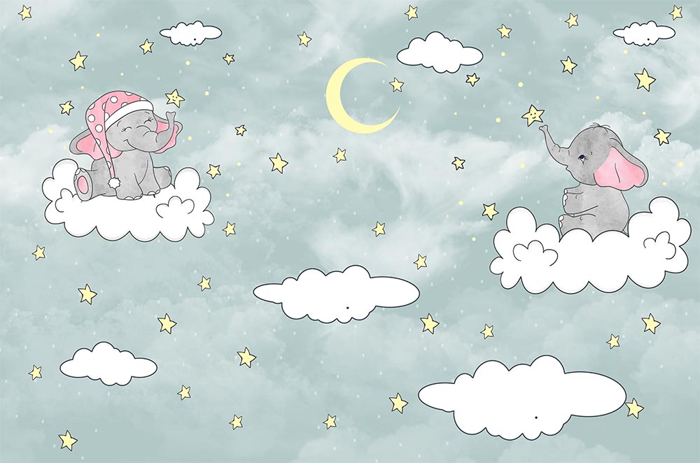 • Bulut Üzerinde Sevimli Filler Çocuk Odası Duvar Kağıdı 3 boyutlu şekilde satın alın!