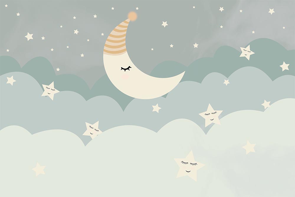 • Bulutlar Ay ve Yıldızlar Çocuk Odası Duvar Kağıdı 3 boyutlu şekilde satın alın!