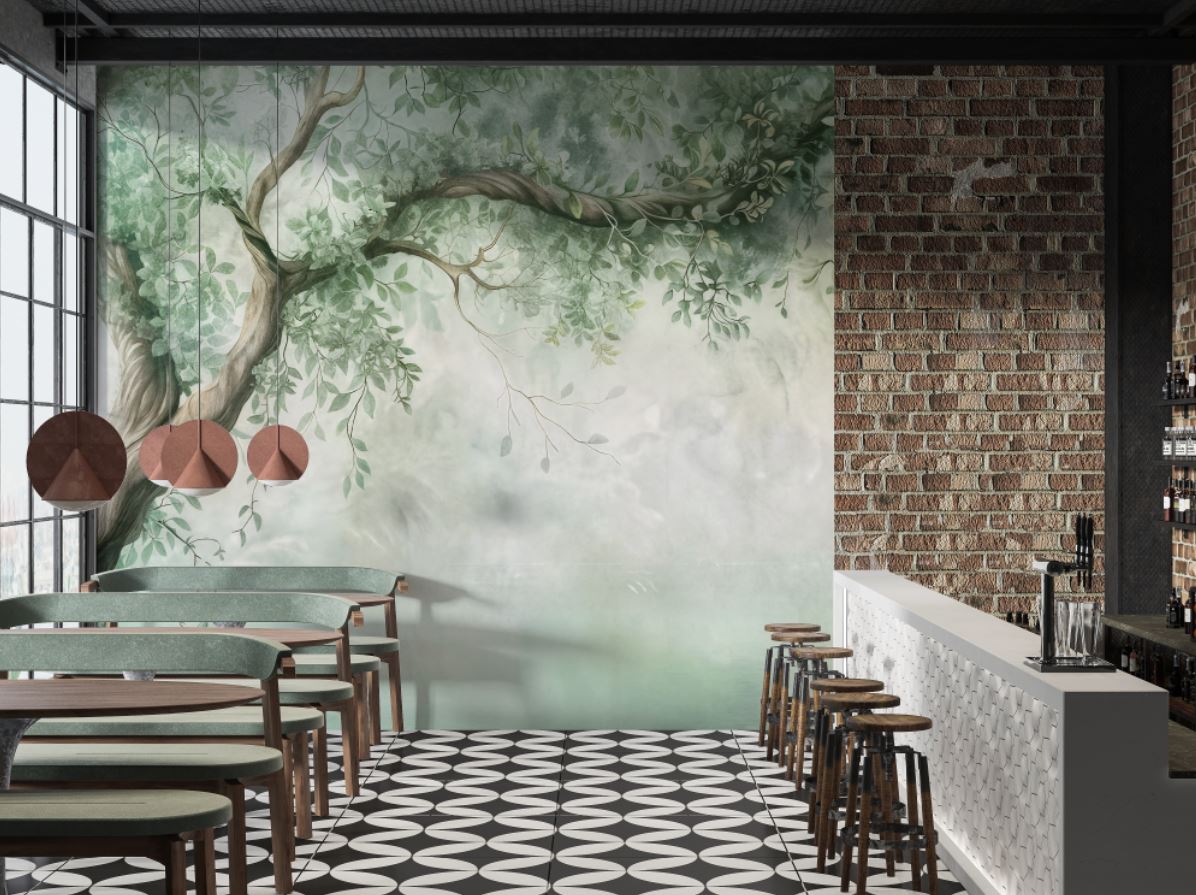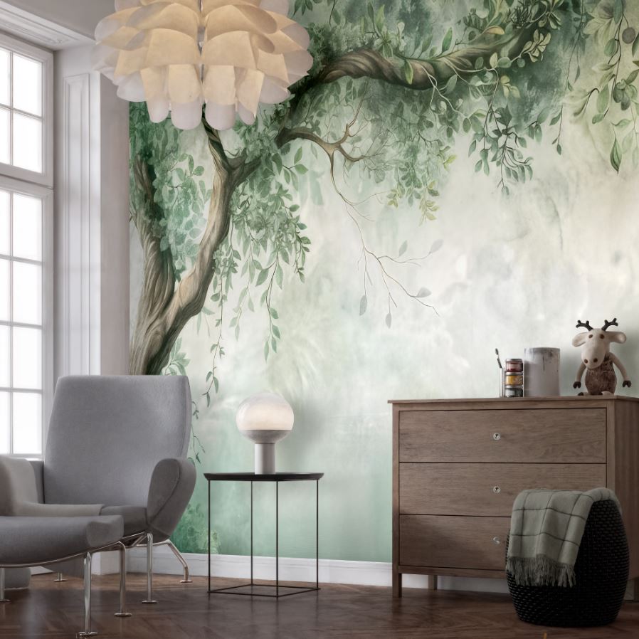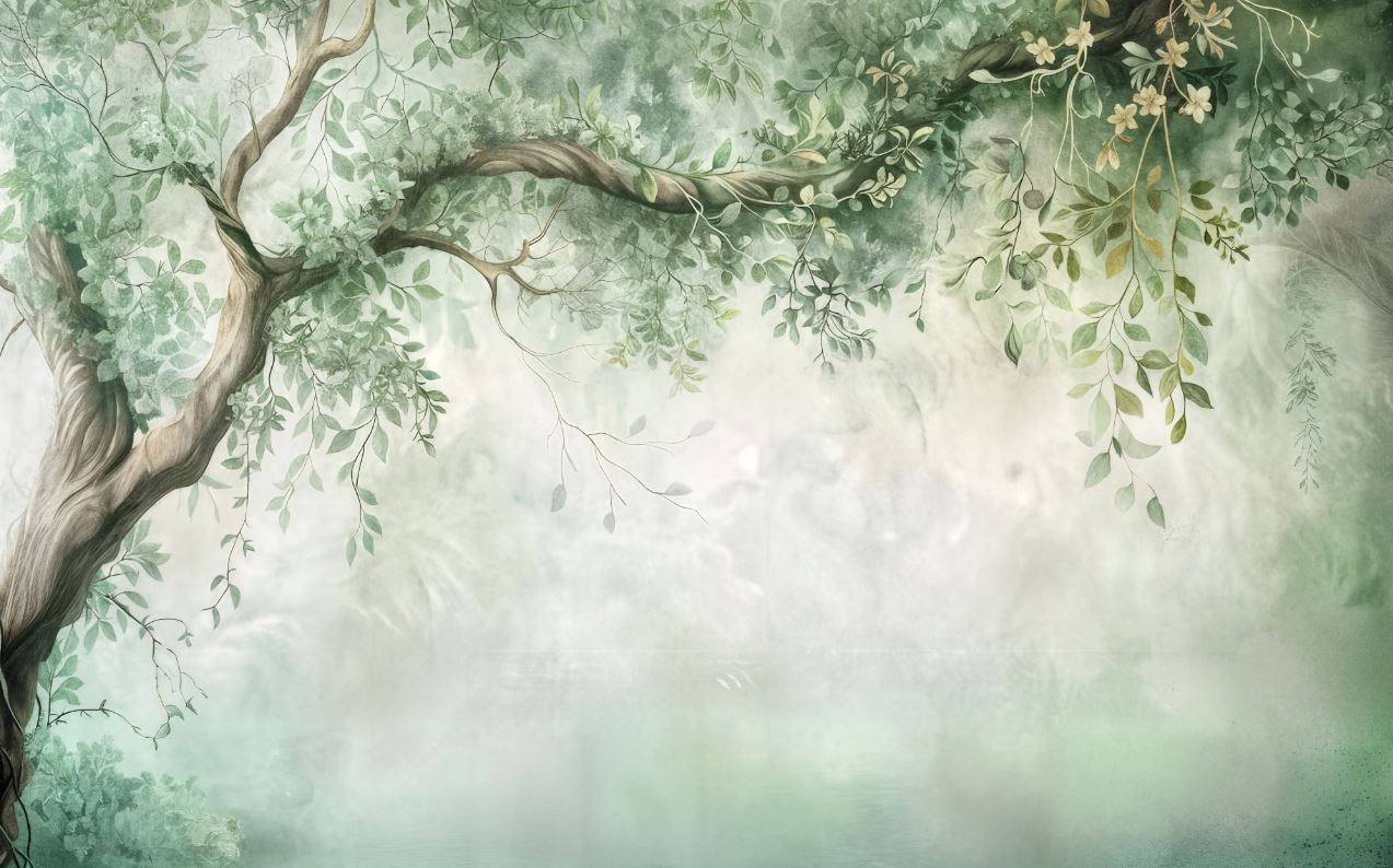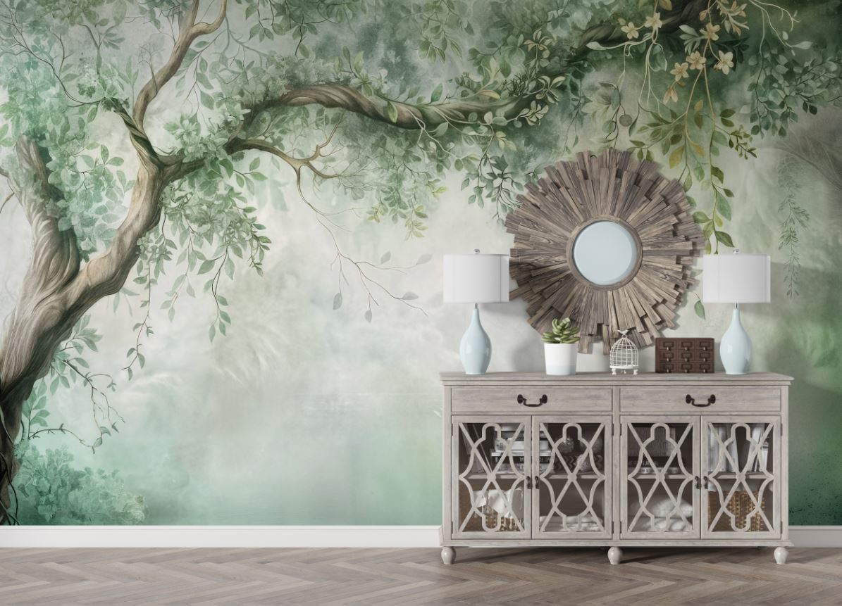 • Büyük Ağaç Dalı ve Sarmaşık Yapraklar Duvar Kağıdı 3 boyutlu şekilde satın alın!