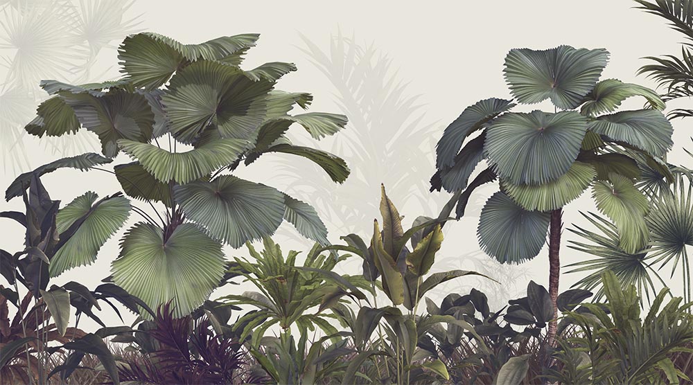 • Büyük Yapraklı Ağaçlar Tropikal Desen Duvar Kağıdı 3 boyutlu şekilde satın alın!