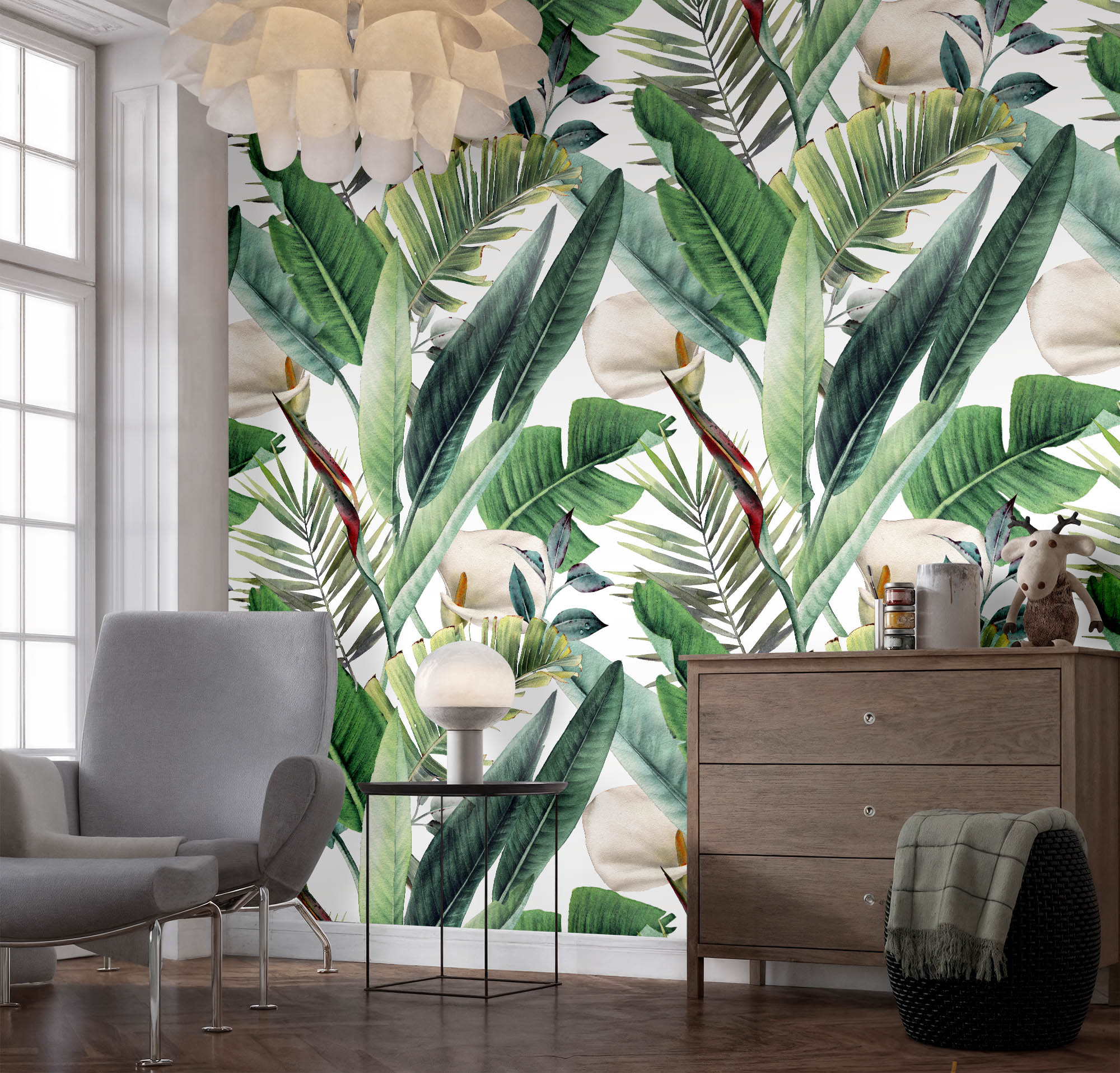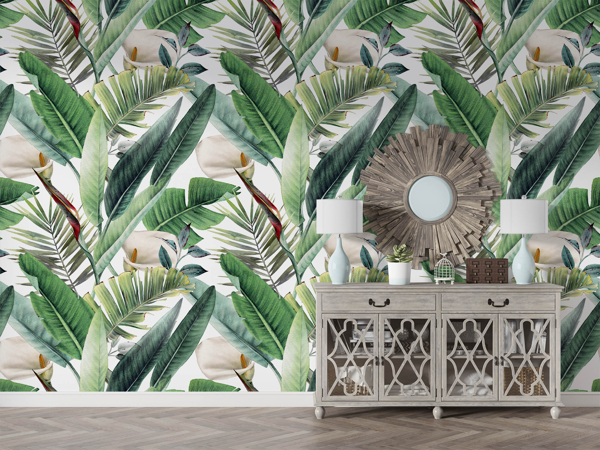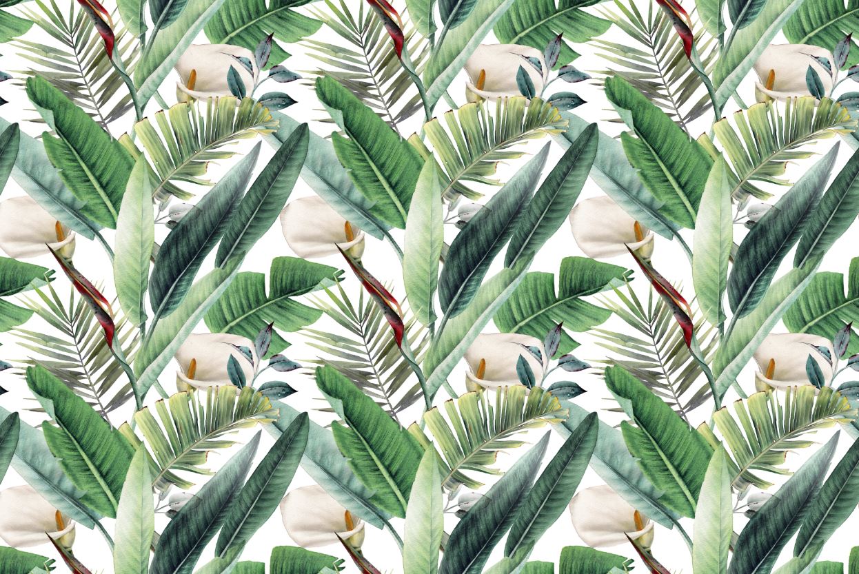 • Büyük Yeşil Yapraklar ve Çiçekler Duvar Kağıdı 3 boyutlu şekilde satın alın!