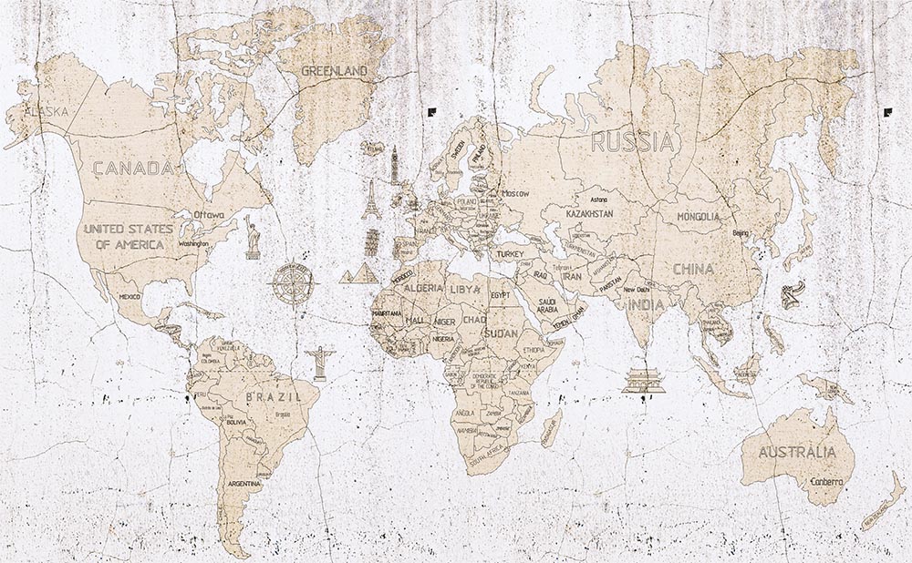 • Çatlak Duvar Zemin Dünya Haritası Duvar Kağıdı 3 boyutlu şekilde satın alın!