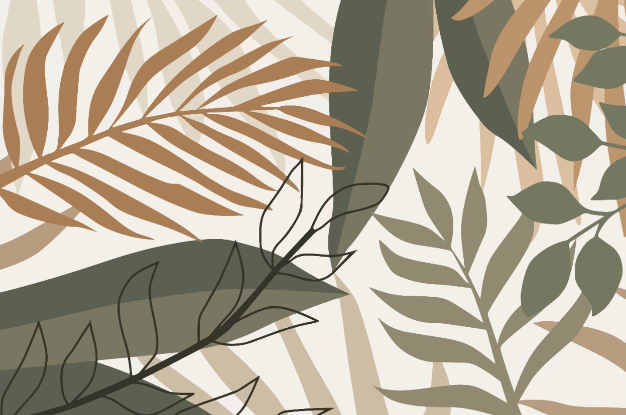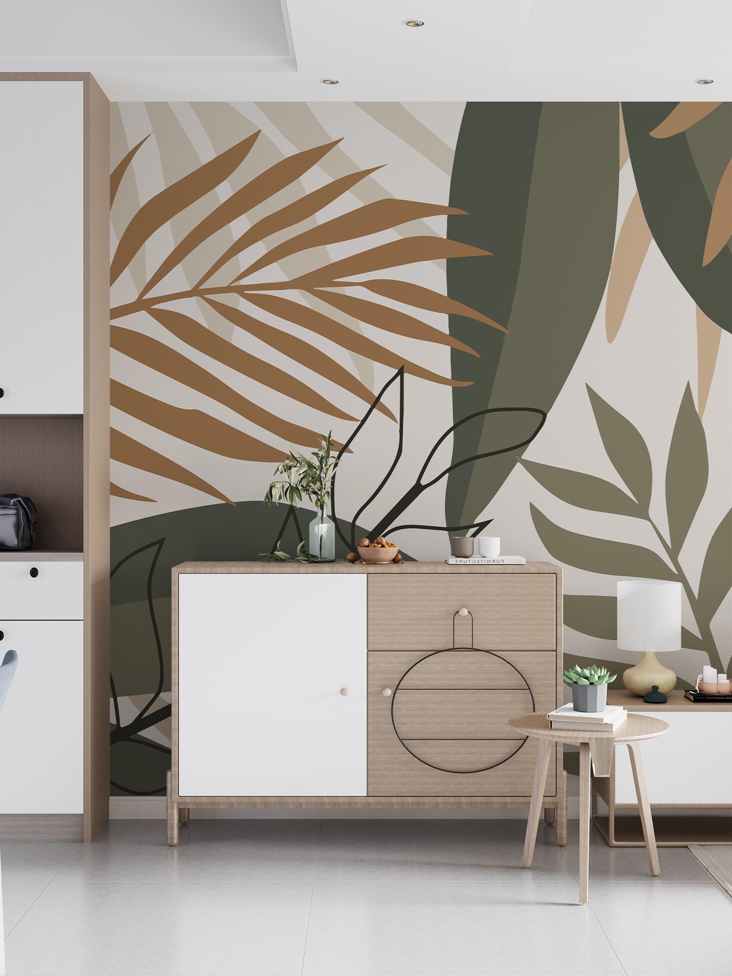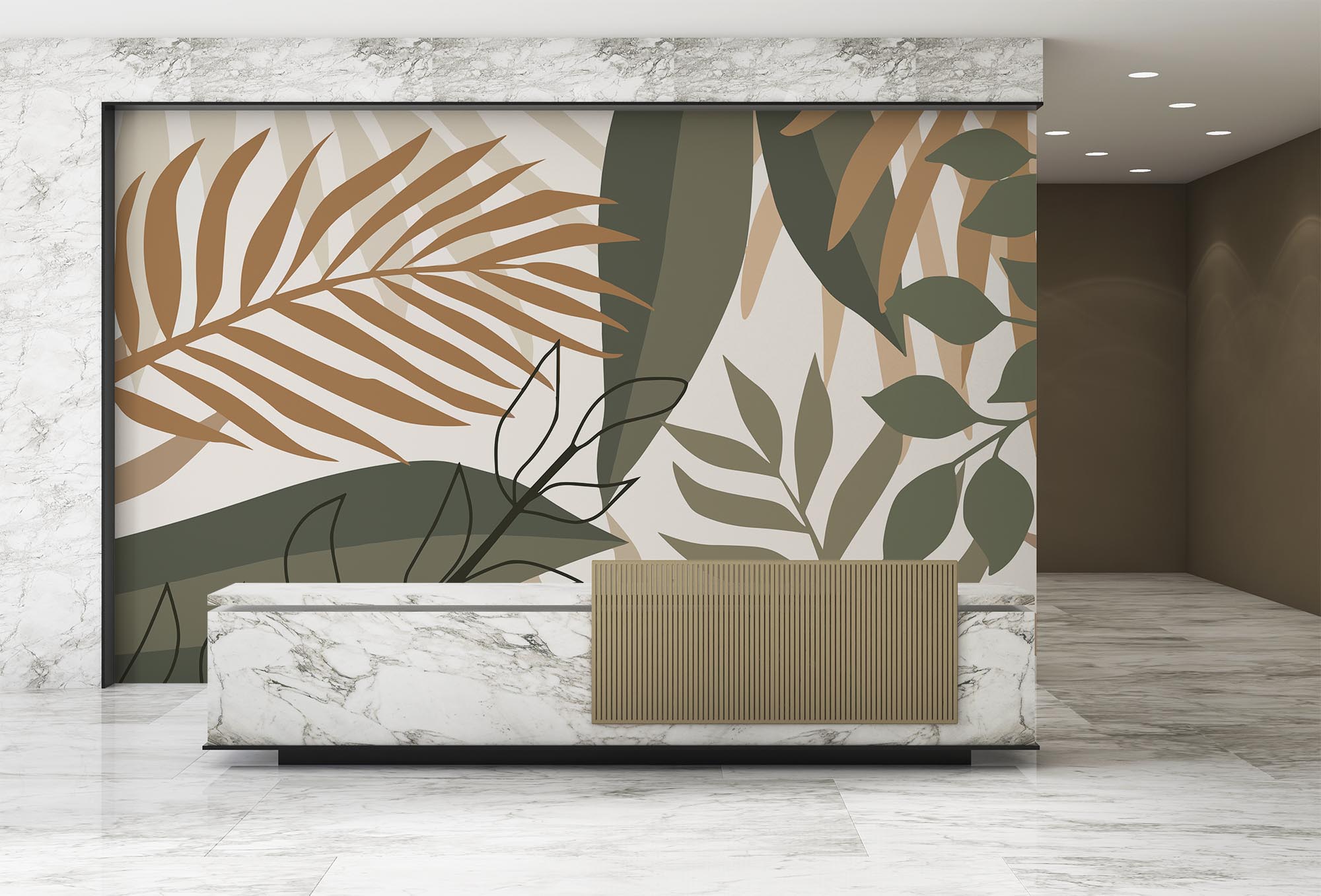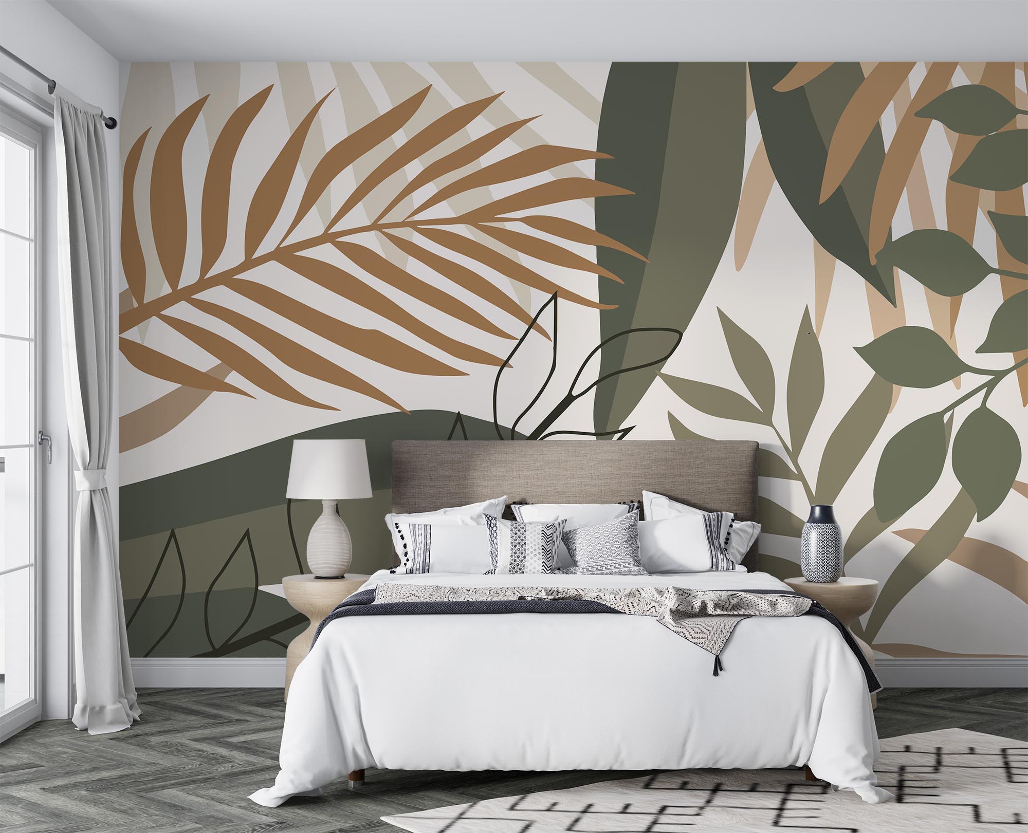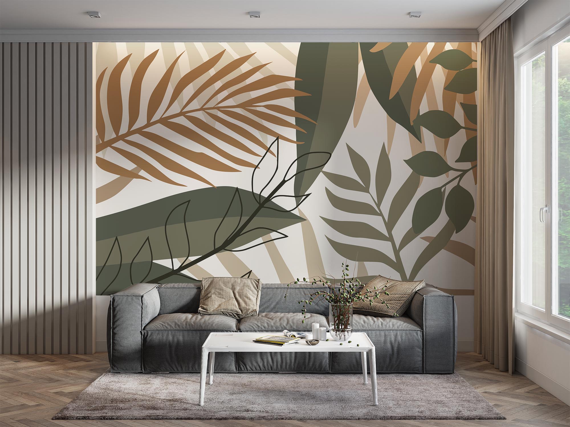 • Çizim Tarz Tropikal Yapraklar Duvar Kağıdı Modeli 3 boyutlu şekilde satın alın!