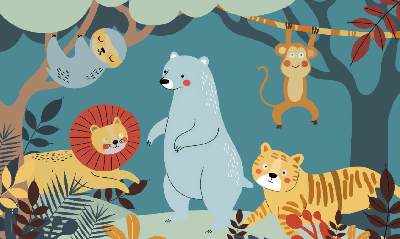 Çocuk Odaları ve Kreşler için Sevimli Safari Hayvanları Duvar Kağıdı